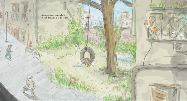 Se trata de una historia que tiene lugar en un escenario muy cercano a los niños y niñas, el lugar en el que pasan las tardes jugando, inventando, imaginando otros mundos. La historia nos muestra un ejemplo de la fuerza que podemos llegar a tener cuando trabajamos juntos. Nos cuenta una historia de lucha por los espacios llenos de vida que quedan en las ciudades y nos muestra la importancia de lugares que sean para las personas que conforman nuestra comunidad. Consideramos que es un tema de lo más actual, ya que en estos tiempos hemos podido ver cómo especialmente las necesidades de la infancia se tenían totalmente olvidadas.