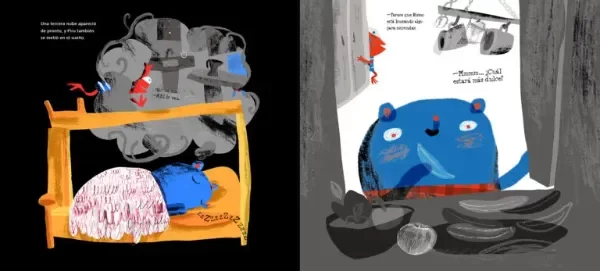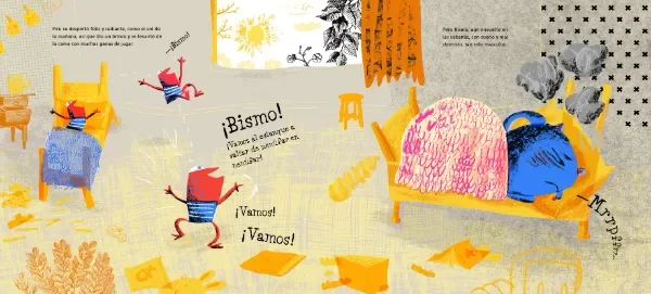 Piru se levanta con muchas ganas de jugar, saltando de aquí para allá. Pero Bismo está muy cansado porque sus propias pesadillas lo despiertan y luego no se puede dormir.