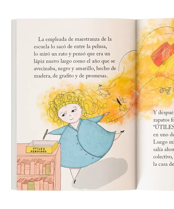 Un lápiz negro llega al aula con muchas ganas de escribir, pero termina temblando en la caja de útiles perdidos donde conoce a un lápiz viejo que le contará cómo se escribió su historia.