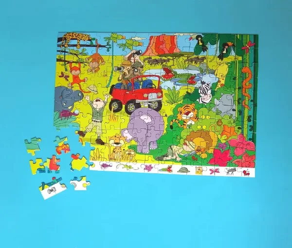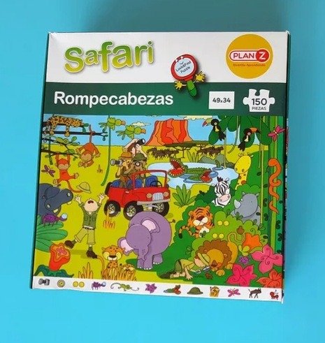 Incluye 150 piezas de cartón super resistentes. No se doblan y ensamblan perfectamente. Incluye juego de busca y encuentra.